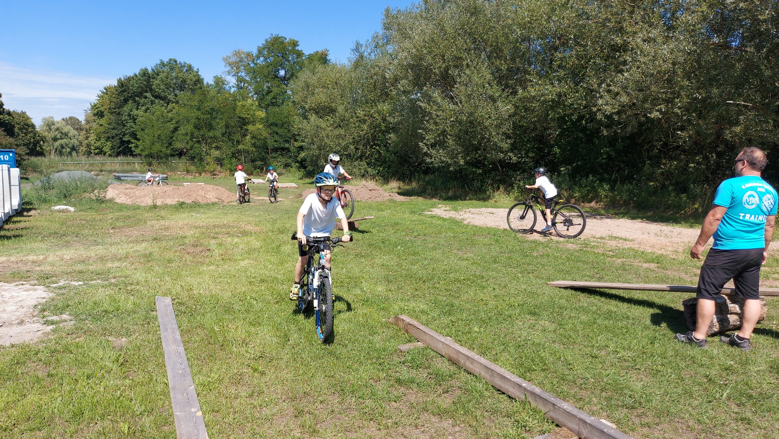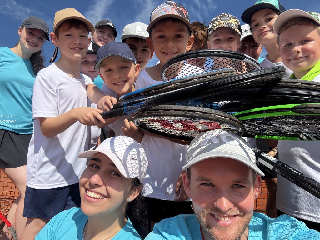 Freitag begann wieder mit Aufwärmen, bevor es mit Tennis, Fußball, Mountainbike und Tanzen weiterging. Beim Mountainbiken lernten die Kinder das sichere Fahren über Wippen und Rampen, und beim Tanzen wurde so manch verstecktes Rhythmustalent entdeckt.