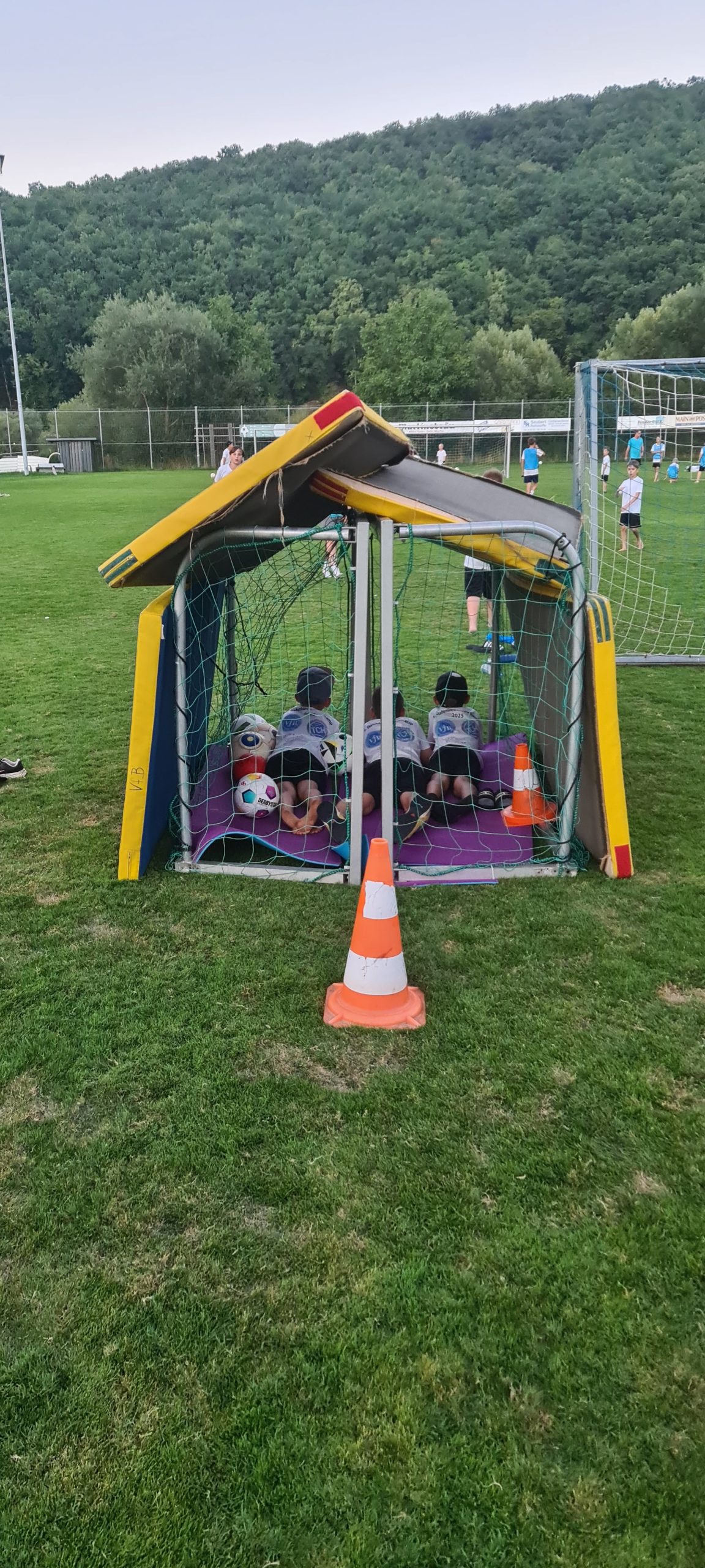 Rund die Hälfte der Kinder blieb danach zum Zelten am Sportplatz. Bei Kartenspielen, Gesellschaftsspielen und jeder Menge Gelächter verging der Abend wie im Flug. Als die Sonne unterging, stand noch Nachtfußball mit Leuchtball und Knicklichtern auf dem Programm – ein stimmungsvoller Abschluss, bevor es in die Schlafsäcke ging.