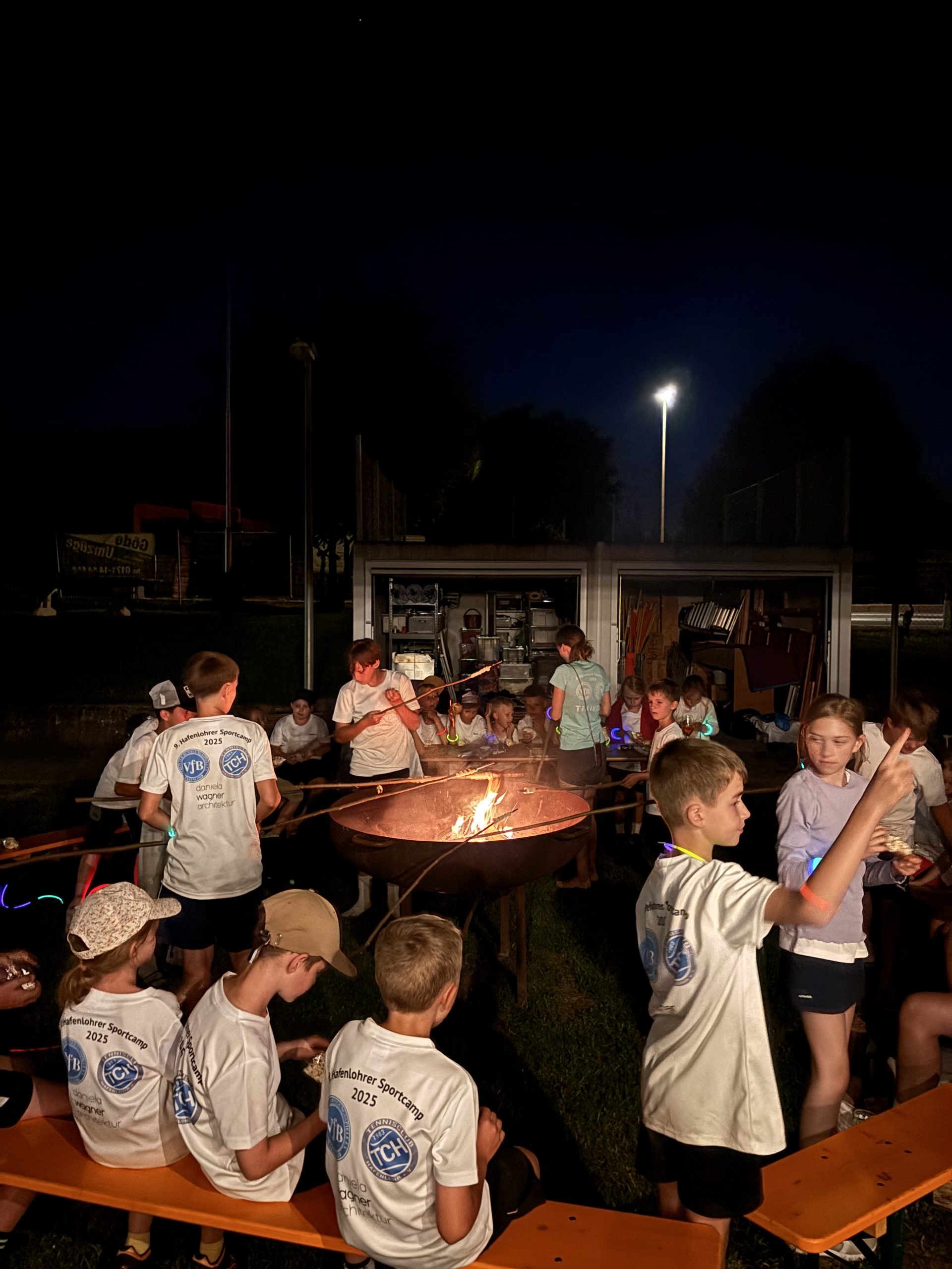 Um 16 Uhr startete dann das Highlight des Wochenendes: Vorführungen der Kids, Salate und Gegrilltes, ein gemütliches Lagerfeuer mit Stockbrot – und natürlich das traditionelle Trainer-Eltern-Kinder-Völkerballturnier.